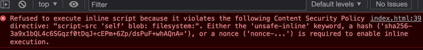 When you rebuild your extension with the CSP issue fixed, you may still see another issue related to an unsafe-eval line being run: