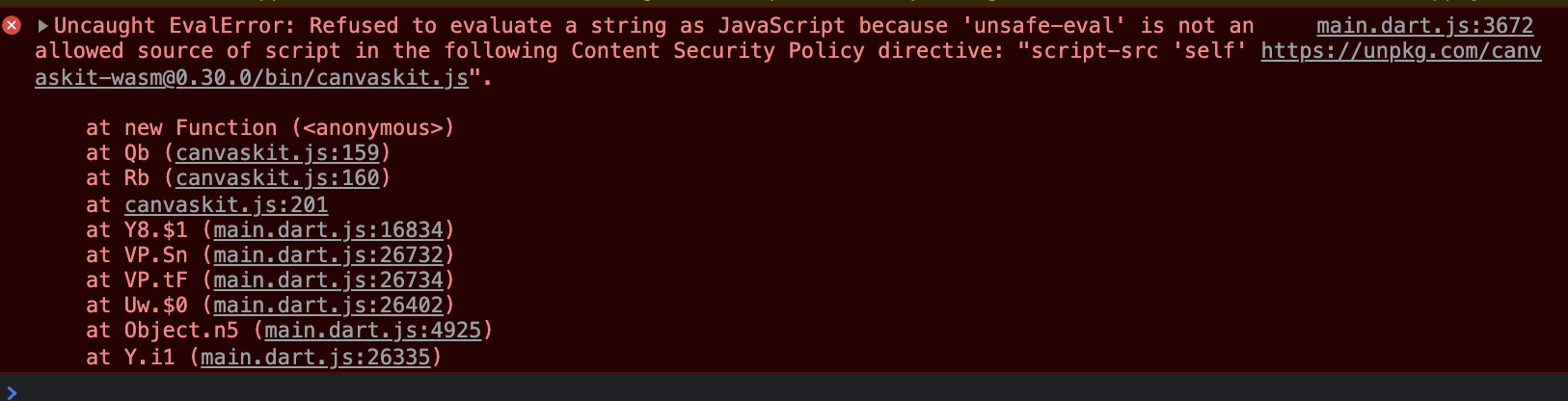 If you see this error, it is a known issue with Flutter and CanvasKit and we will have to use the HTML renderer instead of CanvasKit to build our extension.