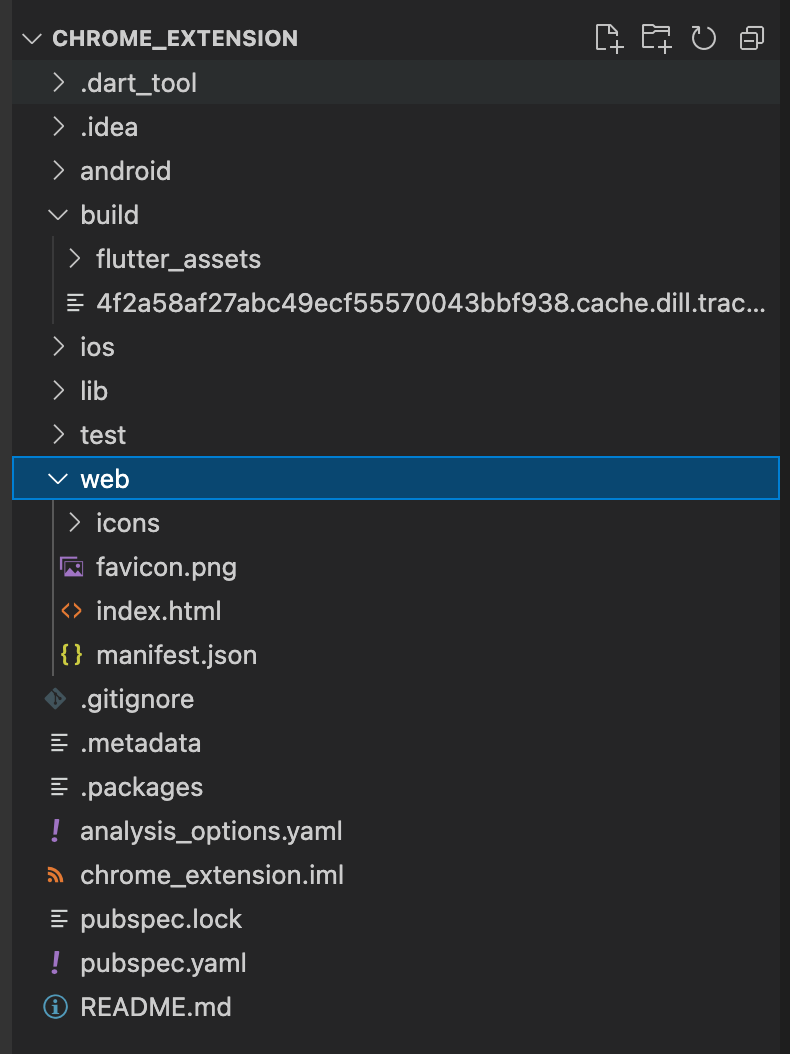 The build folder contains all of your application’s code, assets and other necessary dependencies. Your web specific build can be found under /build/web and this is the folder we’ll zip and upload to the Chrome store when we’re ready to submit our new extension.